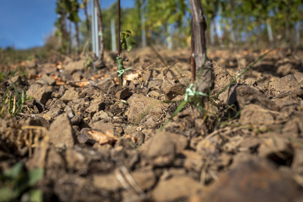 … Příznivá morfologie zdejšího terénu vystavuje keře révy dostatečnému slunečnímu záření a proudění vzduchu, což je nezbytné pro vývoj kvalitních a zdravých hroznů. Podloží, tvořené rozloženým vulkanickým tufem smíšeným s čedičovými kameny, balvany a bazaltovými výlevy, vytváří půdu s unikátním minerálním složením, které se pak obráží ve víně. Jedná se o nejzápadnější produkční vinici České republiky. Vzhledem k chladnějšímu klimatu, vyšší než obvyklé nadmořské výšce (335 – 380 m n.m.) a blízkosti Krušných hor vinohrady občas čelí pozdním jarním mrazům (např. rok 2020 – kompletní zmrznutí, rok 2024 – částečné pomrznutí). Staré odrůdy mají fenologické zrání hroznů (a tím i sklizeň) posunuté do pozdějších podzimních termínů, díky čemuž mohou hrozny vyzrát do ideálních až špičkových parametrů. Kvalitní hrozny mi pak umožní tvořit vín se specifickými komplexními chutěmi / vůněmi a také vyšší kyselinkou, která začíná být v klasických vinařských oblastech např. na Moravě, natož v Itálii, „nedostatkovým zbožím“. Pozdní sklizeň ale znamená závislost na příznivém průběhu podzimního počasí, což není pravidlem … Avšak i díky těmto obtížím se víno každé odrůdy každého ročníku liší a bude lišit ve svém projevu, což je pro znalce vín ta největší odměna. Vinice jsou od počátku obhospodařovány v certifikovaném BIO režimu a navíc i bez použití měděných postřiků. V co největší míře jsem se pokusil na pozemcích zachovat biotopy (remízy, staré stromy, keře) a snad i přispěl ke vzniku nových (kamenné hromady a řady). To je dle mého názoru šetrný přístup k udržení a spíše již k obnovení biodiverzity v krajině, vydrancované dnešním pojetí „zemědělství“. *Codex diplomaticus et epistolaris regni Bohemiae I. Ed. Gustav Friedrich, Pragae 1904/1907. In HLAVÁČEK, Petr – Z dějin vinařství na Kadaňsku in sborník Minulost a současnost vinařství v Kadani, Město Kadaň, 2009)