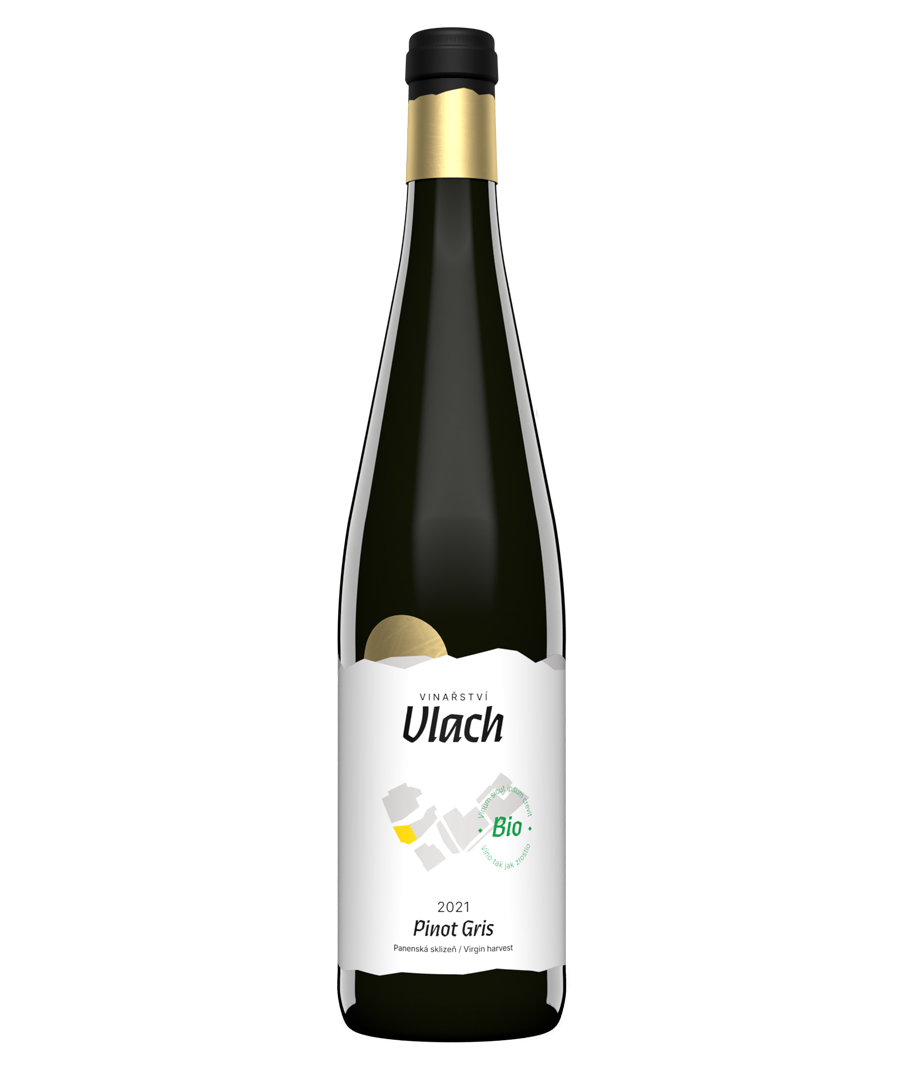Pinot Gris (Rulandské šedé) z panenské sklizně ročníku 2021.